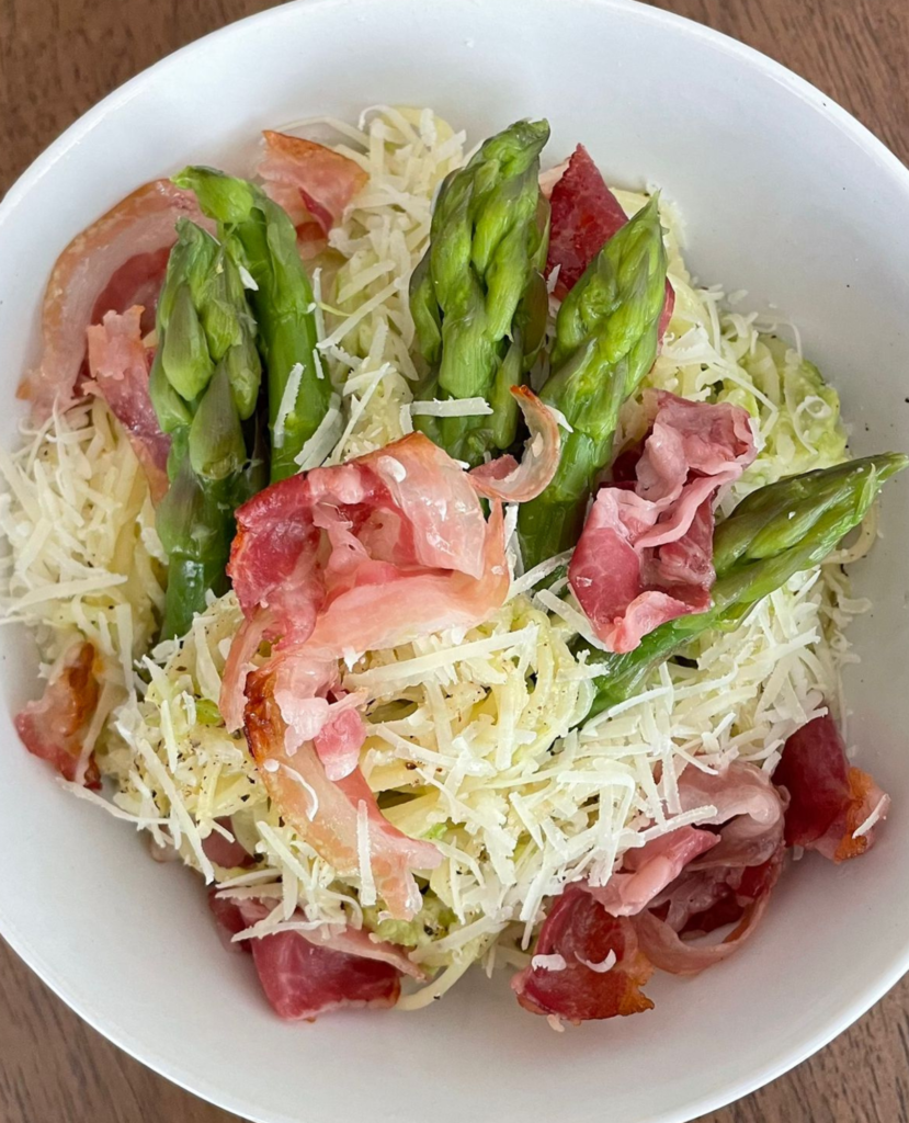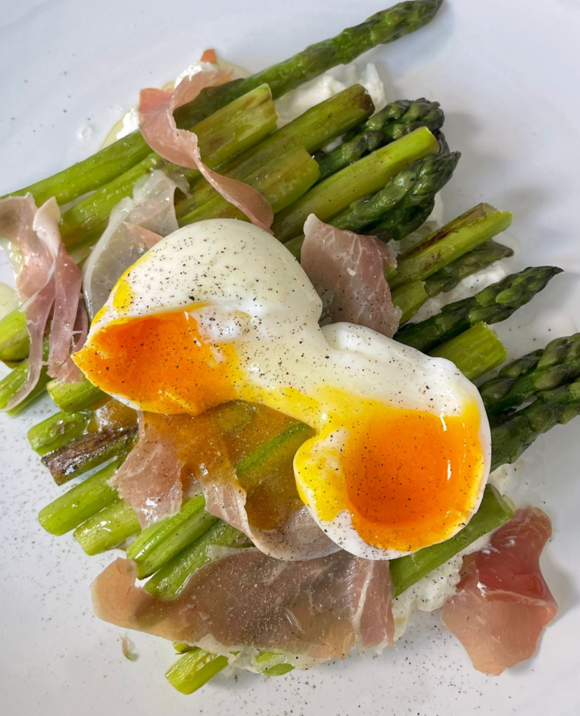 Asperges vertes, burrata, œuf mollet…