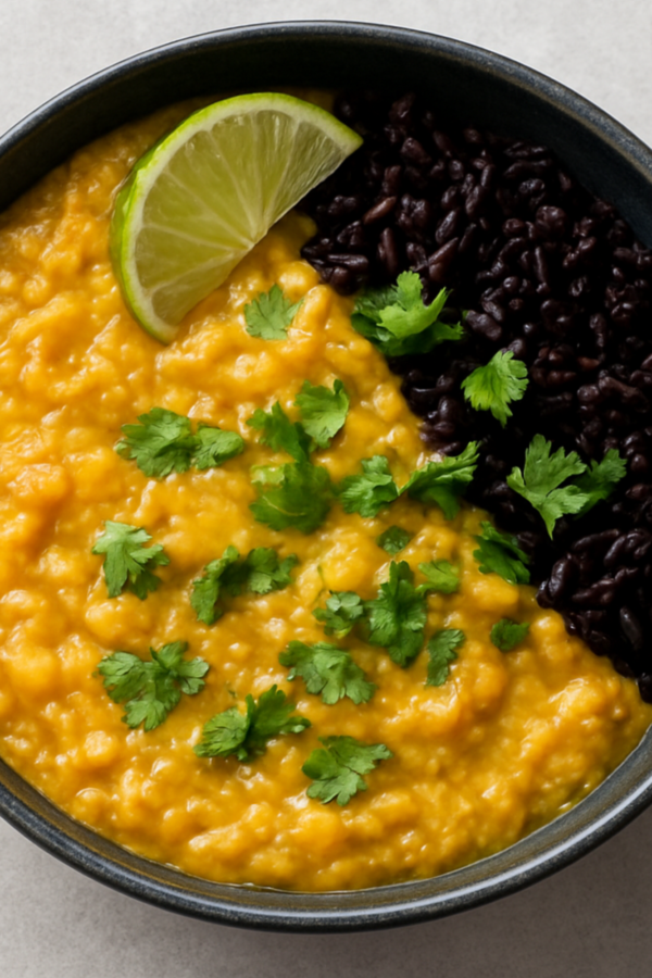 - Cuisson du riz et des lentilles : Lance la cuisson du riz noir dans une casserole avec de l’eau. Après 15 minutes, ajoute les lentilles vertes dans une autre casserole pour qu’elles cuisent en parallèle.